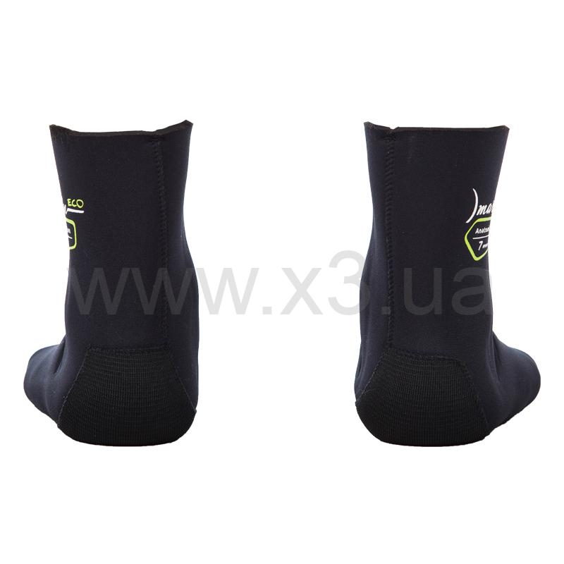Носки Marlin Anatomic Nylon Eco (Марлин Анатомик Нейлон Эко) выполнены из эластичного неопрена фирмы Sheico L, имеют анатомический крой (правый, левый). Внутри - нейлон, наружное покрытие – нейлон. Подошва для лучшей износостойкости выполнена из более жёсткого компрессионного неопрена и усилена материалом дюратекс. Швы проклеены специализированным неопреновым клеем.