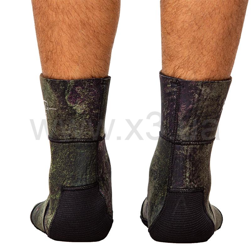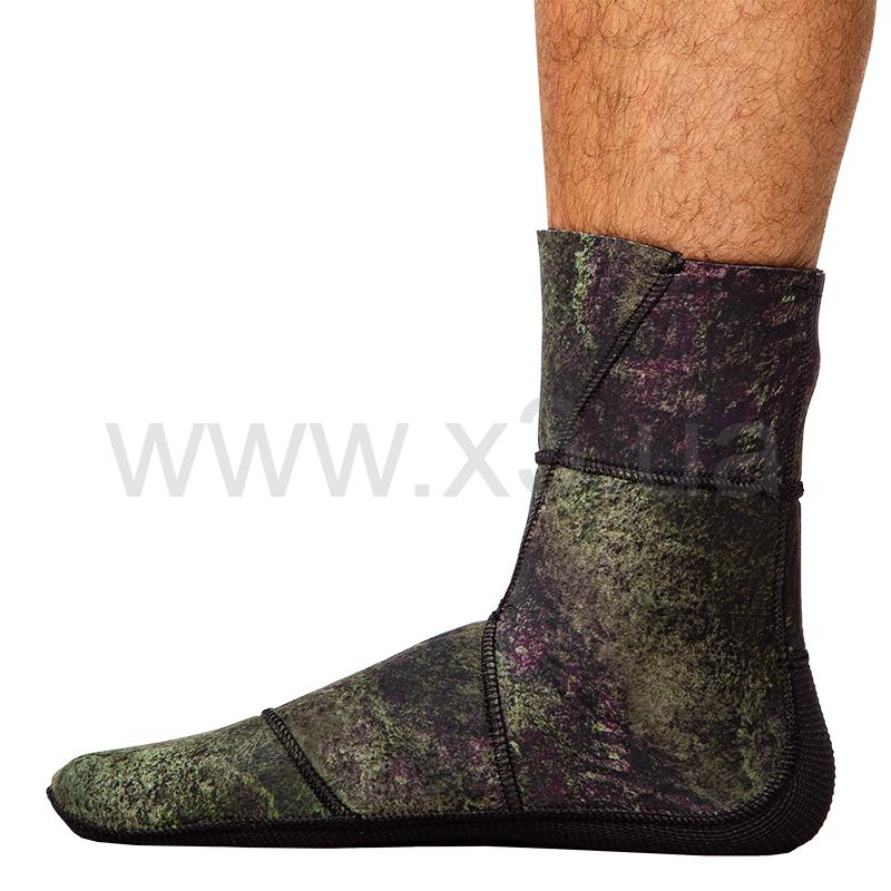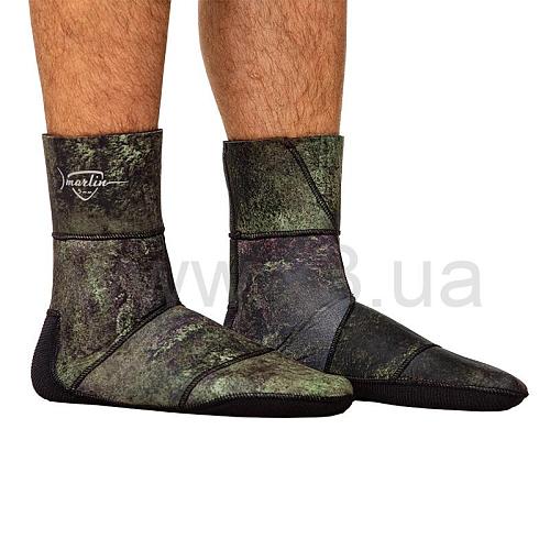 Носки Marlin Standart (Марлин Стандарт) выполнены из эластичного неопрена, имеют анатомический крой (правый, левый). Внутри - открытая пора. В камуфлированных моделях наружное покрытие лайкра, в модели черного цвета классический черный нейлон. Подошва для лучшей износостойкости выполнена из более жёсткого компрессионного неопрена и усилена материалом дюратекс. Швы проклеены специализированным неопреновым клеем.