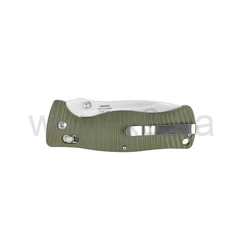 Для накладок на рукоятку ножа производители использовали современный вид пластика высокой прочности под названием G10. По сути, он представляет собою композитный материал из эпоксидных смол и стеклоткани. Этот материал обладает высокой прочностью, хорошо выдерживает удары, противостоит влаге и долгое время сохраняет яркий цвет. Рукоятка ножа Firebird F720 неровная. Такая форма одновременно играет роль элемента дизайна и способствует надежному хвату.