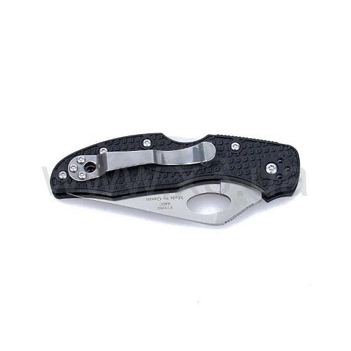 Что касается рукоятки, то она может быть оранжевой, черной, розовой или же голубой. Материалом для ярких накладок послужил наполненный стекловолокном нейлон. Это очень прочный и стойкий к различного рода воздействиям материал, который прослужит много лет. Чтобы нож не проскальзывал в ладони, накладки сделаны текстурными. Чтобы закрепить нож в кармане и исключить его выпадание во время переноски, рекомендуется использовать прижимную клипсу. Ее можно установить в том положении, которое покажется наиболее удобным (всего возможно 4 варианта).