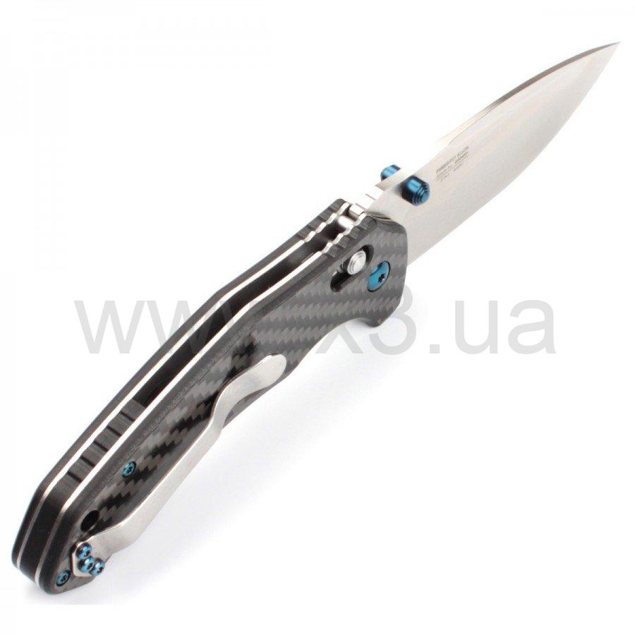 Рукоять складного ножа F7611-CF имеет довольно простую конструкцию. Она состоит из двух стальных лайнеров и пары карбоновых накладок. Этот полимер не восприимчив к коррозии, температурным перепадам и по прочности может быть сравним со сталью. К тому же, за счёт неоднородной структуры, рукоять ножа смотрится крайне эффектно.