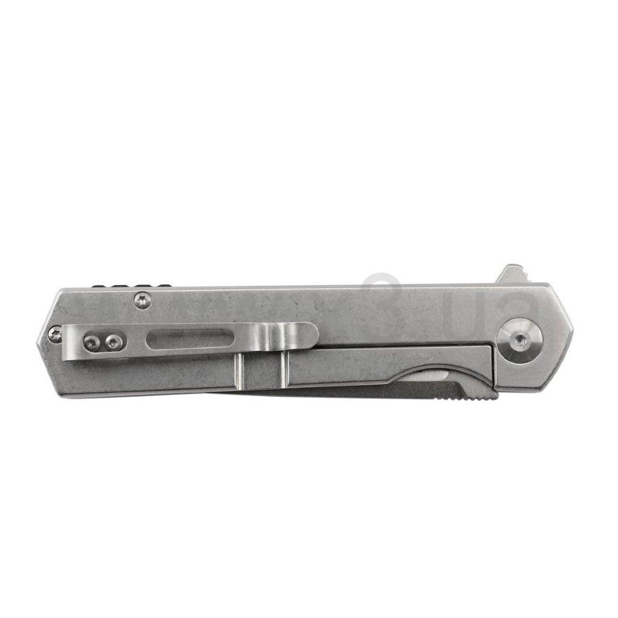 Рукоятка ножа Firebird FH12-SS тоже выполнена из металла, но это уже другая марка стали – нержавеющая. Она также отшлифована методом галтовки, укомплектована прижимной клипсой, которая прикручивается парой болтов. На обратной стороне рукоятки также имеется место для крепления клипсы на случай, если владельцу ножа захочется поменять ее положение.