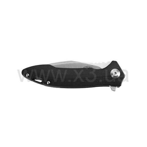 Рукоятка данного складного ножа изготовлена из стеклопластика G10. Это композитный по структуре материал, что определяет его высокую прочность и очень большую долговечность. Ручка ножа может быть окрашенной в один из трех цветов: синий, черный или коричневый. Этот цвет не выгорает на солнце и не выцветает со временем. Поверхность рукоятки специально сделана шершавой, чтобы даже во влажных руках нож не скользил. Также производители предусмотрели наличие небольшого отверстия, в которое можно продеть темляк, и прикрутили к рукоятке прижимную металлическую клипсу.
