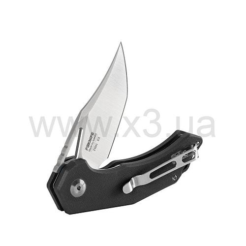 Клинок извлекается как с помощью незначительного отверстия под большой палец у основания, так и за счет флиппера с противоскользящими пропилами. Фиксируется лезвие за счет наличия стального замка типа Liner-Lock.