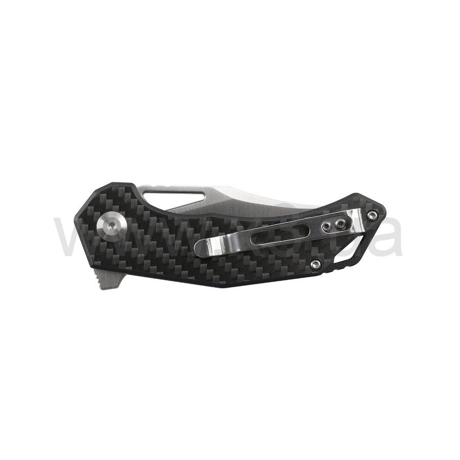 Извлекается клинок в модели как с помощью незначительного отверстия под большой палец у основания, так и за счет флиппера с противоскользящими пропилами. Фиксируется лезвие благодаря стальному замку типа Liner-Lock.