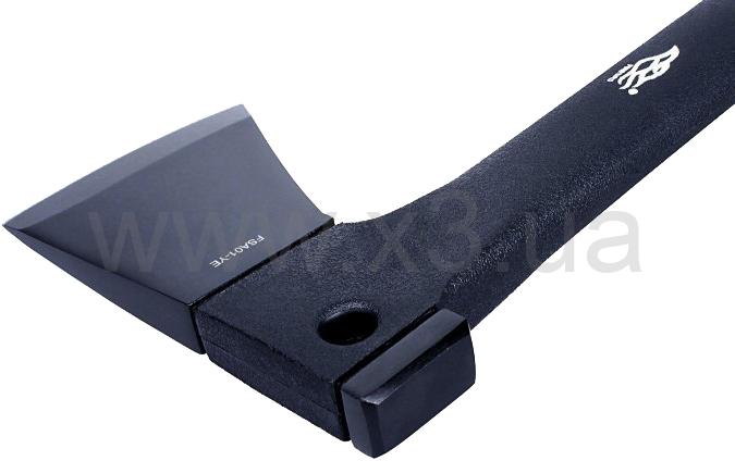 Само топорище также имеет черный цвет, поскольку производители красят металл особой стойкой краской. Эта мера не только делает дизайн привлекательнее, но и что гораздо важнее, помогает защитить сталь от коррозии при контактах с различными веществами на природе (такими, как вода, сок и смола деревьев). Марка металла для топора — это 3CR13.