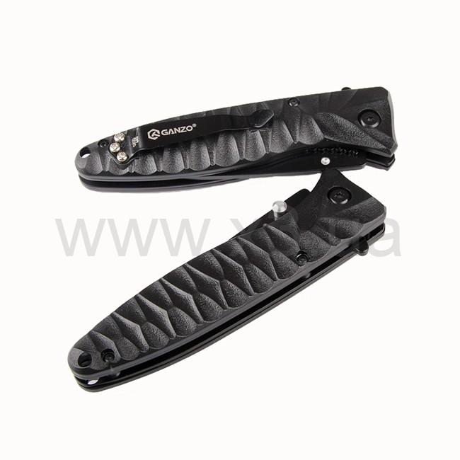 Нож Ganzo G620 представляет собою складную модель, рассчитанную на использование в туристических условиях. Его отличительной чертой является черненый клинок с заточкой прямого типа. Кроме того, что такой нож привлекает взгляд каждого ценителя качества Ganzo, черный цвет лезвия играет еще и практическую роль. Дело в том, что он совершенно не бликует.