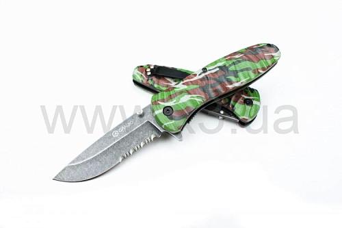 Это достаточно компактный и безусловно удобный нож с полусеррейторным клинком.