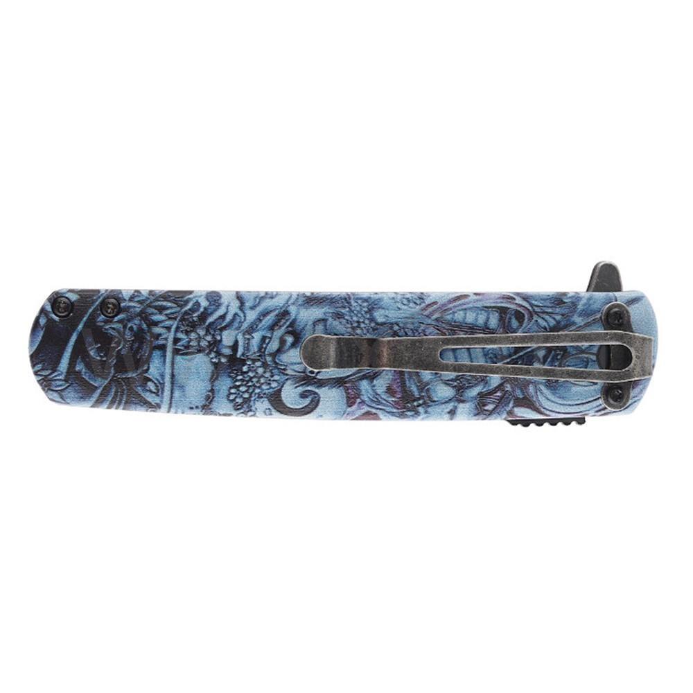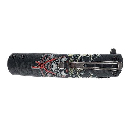 Нож Ganzo 626 приятно удивит не только любителей простых и практичных EDC-ников, но также и тех, кто любят некую «изюминку» в модели. Здесь таковой является дизайнерское оформление флиппера, для которого придумали 4 различных варианта рукояти. Можно подобрать обычный чёрный цвет, а можно взять что-то из предложенных экземпляров с рисунками. Это стильно выглядит, и поможет владельцу такой модели выделиться на фоне других ножеманов.