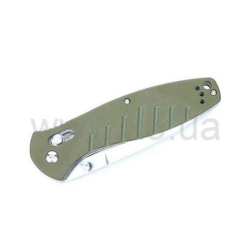 Для рукоятки был выбран стеклопластик марки G10. Он заслужил доверие производителей и покупателей ножей благодаря невосприимчивости к коррозии и прочности. По этим признакам G10 существенно превосходит другие виды пластиков. Рукоятка ножа имеет удобные размеры и форму. Ее поверхность не гладкая, а текстурированная, к тому же, выскальзыванию рукоятки препятствуют длинные выемки в нижней части рукоятки. Они же служат декоративным элементом в общем дизайне. Модель Ganzo G738 выпускается в трех вариантах, каждый из которых отличается цветом рукоятки. На собственное усмотрение, покупатели могут выбрать черную ручку ножа, темно-зеленую или же оранжевую.