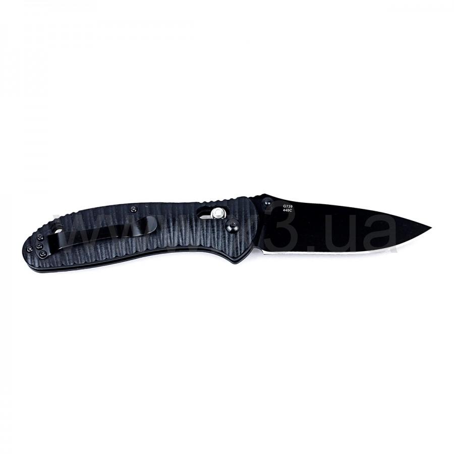 Клинок ножа — черный. Он покрыт современной порошковой краской, которая является очень стойкой и не стирается в процессе эксплуатации. Благодаря ей, нож не блестит на солнце и имеет дополнительную защиту металла от коррозии. Кстати, для Ganzo G7393Р выбрана твердая (до 58HRC) сталь 440С, не подверженная ржавлению. Длина лезвия равна 87 мм. Его кромка — гладкая, что удобно и для приготовления бутербродов, и для хозяйственных работ.