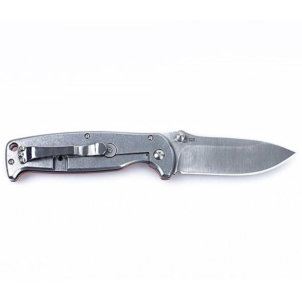 Она сделана из композитного материала G10, обладающего большой прочностью и долговечностью. К металлической основе рукоятка прикручена тремя болтами. Ее поверхность имеет волнистую поверхность., способствующей тому, чтобы нож не скользил в ладонях. С обратной стороны материал рукоятки — это сталь с матовой обработкой поверхности. Здесь же прикреплена и металлическая клипса, хотя при желании, ее можно переставить на лицевую сторону.