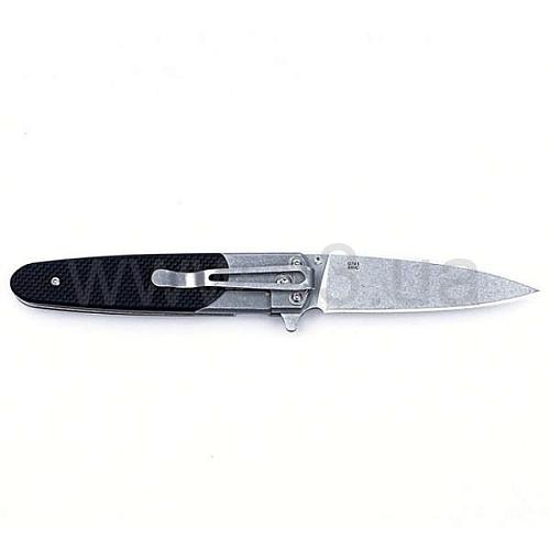 Основной материал этого ножа — нержавеющая сталь 440С. Она широко распространена в ножевой индустрии благодаря тому, что хорошо переносит полевые условия и долгое время сохраняет качественную заточку. Лезвие ножа полностью гладко заточено, а потому ним удобно резать любые продукты питания и многие другие материалы. Все разрезы получаются аккуратными и ровными. Длина клинка этого ножа — 87 мм. Крепость ему обеспечивает толщина металла 3 мм. Поверхность металла обработана методом сатинирования. Это гладкая шлифовка, при которой на клинке остаются едва заметные штриховые следы, указывающие направление обработки металла.