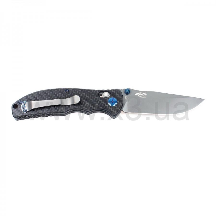 Детали рукоятки изготавливаются из углепластика. Это материал с композитной структурой, который в состоянии конкурировать со сталью по прочности, но при этом, гораздо легче металла. Накладки привинчиваются к базе с обеих сторон. Кроме того, к одной из накладок прикручена металлическая клипса, которая позволяет закрепить нож во время переноски. В модели Ganzo G7503-CF ручка сделана черной. Производители предусмотрели и возможность крепления к ножу шнурка для его ношения на запястье. Для этих целей, в рукоятке сделано отверстие.