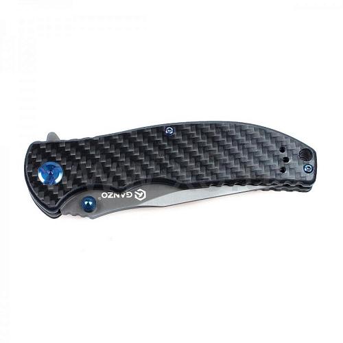 Рукоятка сформирована при помощи двух накладок, прикрученных к металлической базе. Эти накладки изготавливаются из карбонового материала, что дает модели Ganzo G7513-CF существенное преимущество по прочности, легкости и коррозийной стойкости перед другими ножами. Удобным дополнением является клипса, позволяющая крепить нож на поясе.