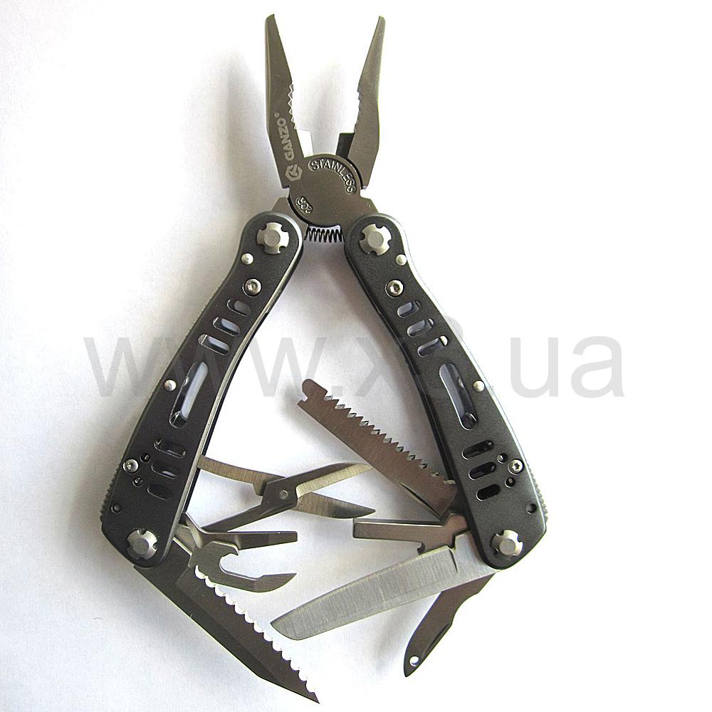 Мультитул Ganzo G203 — универсальный инструмент, который можно использовать как в городе, так и за его пределами. Он пригодится для ремонта офисной техники, машины, мотоцикла, велосипеда, туристического снаряжения, палатки и т.д. Его можно использовать в офисе, возить с собой в командировки, брать на пикник или в более дальнее путешествие. Инструменты и конструкционные крепежные элементы светлого металлического цвета, а рукояти более темные, почти черные. Такое цветовое решение выглядит стильно, необычно и презентабельно.