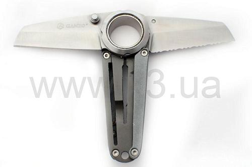 Один из самых необычных складных ножей в производственной линейке китайской компании Ganzo. Складной нож G706-2 имеет два лезвия, которые открываются в разные стороны. Одно лезвие имеет серрейторную заточку, а второе – прямую, что превращает нож G706-2 в своеобразный инструмент, который способен выполнять более широкий круг задач, чем обычные складные ножи.