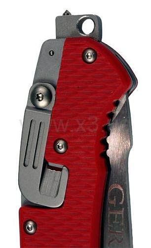 Это настоящий нож спасателя с острым серрейторным лезвием и резаком с закругленным окончанием для перерезания ремней безопасности, веревок, а эргономичная ручка удобна даже при работе в перчатках.