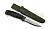 Нож хорошо сбалансирован и отлично лежит в руке, благодаря слегка изогнутой форме рукояти, сделанной из прорезиненного пластика, и выполненной в сочетании черного цвета и цвета хаки. В комплекте с ножом идут пластиковые ножны цвета хаки с зажимом для крепления на поясе.