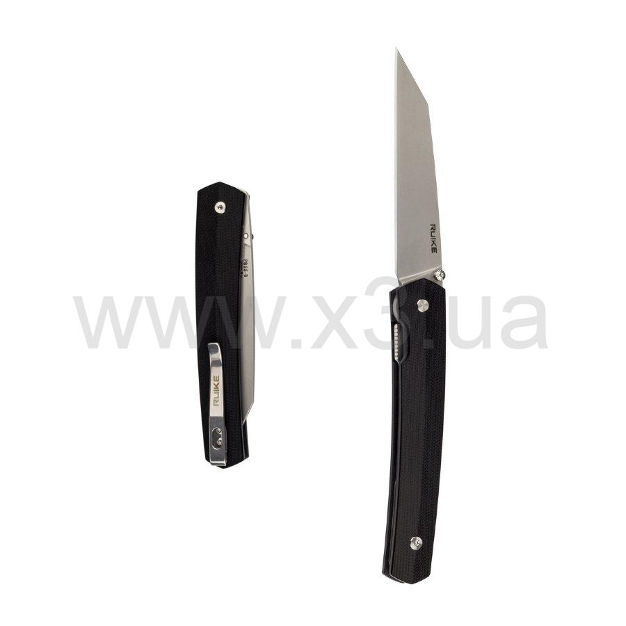 Угловатый дизайн не мешает складному ножу Ruike P865-B быть удобным. Напротив, его рукоять хорошо заполняет ладонь, а клинок прекрасно справляется с режущими и колющими действиями. Эти достоинства в сочетании с лаконичным дизайном и предельно низким весом (всего 70 грамм), делают модель Ruike P865-B отличным вариантом на роль универсального EDC-ножа.