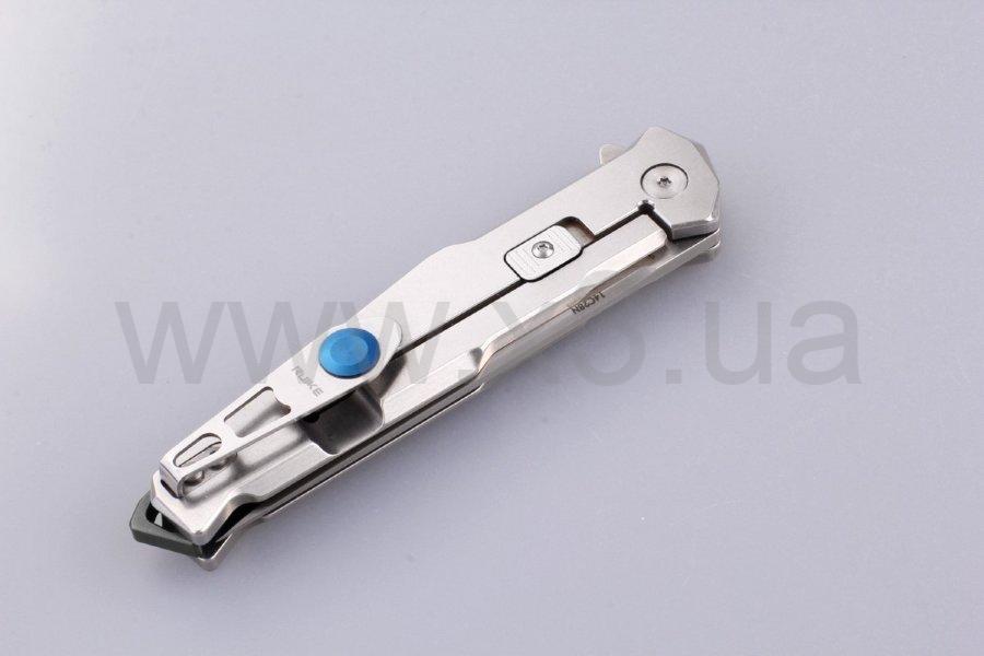 Для изготовления рукояти применяется «нержавейка» марки 3Cr14N, которая по своим характеристикам довольно сильно похожа на сталь 440А. То есть, она имеет хорошую ударную вязкость, не подвержена коррозии и выдерживает значительные механические нагрузки. На одной из сторон установлена съемная металлическая клипса, а в торцевой части присутствует приспособление для крепления темляка (оно также может использоваться в качестве стеклобоя).