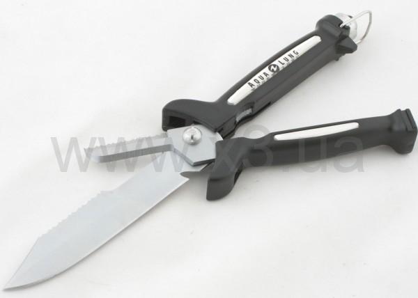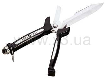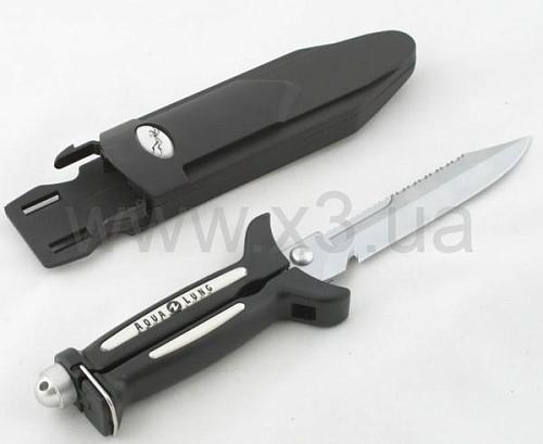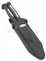 Нож подводного для подводного охотника и дайвера. Твердость, марка стали – AISI 450 MA 3M. Спец. функции – ножницы, стропорез, пила. Эргономическое строение рукоятки, наличие утяжелителя на рукоятки, что сбалансирует нож. Комплектуется двумя резиновыми ремешками для крепления. Вставляется и вынимается в ножны одной рукой.