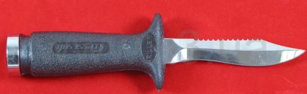 Лезвие с одной стороны гладкое, с другой - частично зазубренное.