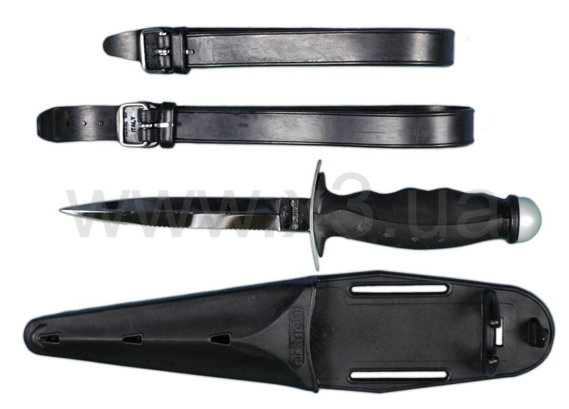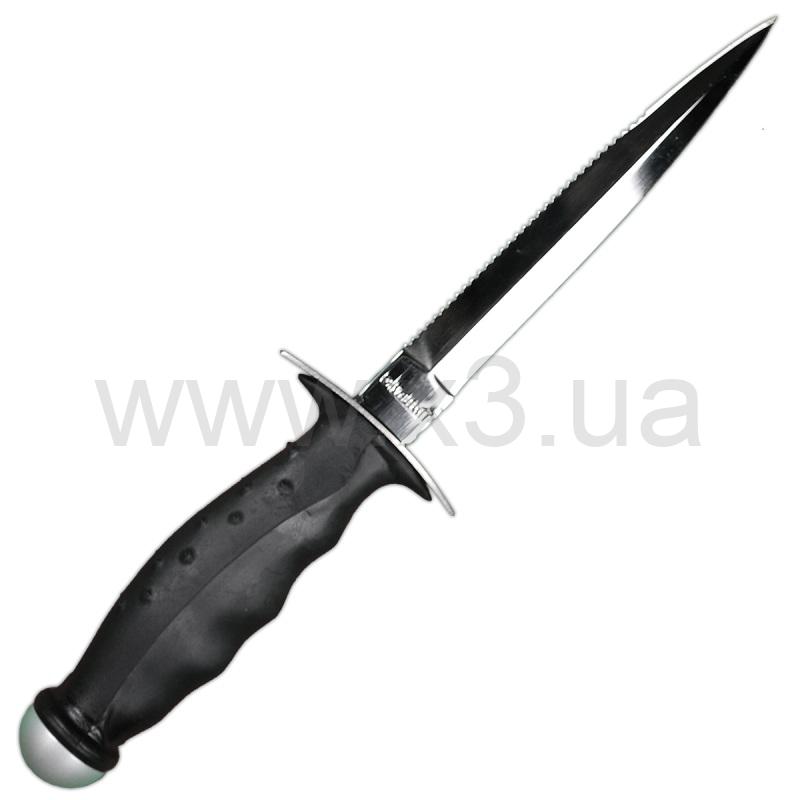 Благодаря антикоррозионному аноду лезвие (с режущей кромкой и серейтером) не ржавеет. Специальная модель для подводной охоты. Лезвие из нержавеющей стали, 135 мм длиной, 4,5 мм толщиной, с серейтером.