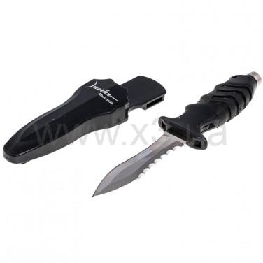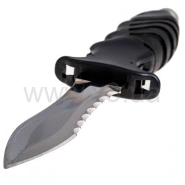 Marlin Abordazh Stainless Steel (Марлин Абордаж Стейнлес Стил) - нож с вогнутой линией реза. С одной стороны – острая режущая кромка, с другой – пилообразный стропорез. Копьевидное острие клинка с хорошей проникающей способностью. Выполнен из прочной нержавеющей стали. Благодаря эргономичной ручке нож удобно ложиться в ладонь. Снабжен металлическим набалдашником на эфесе.
