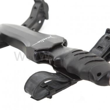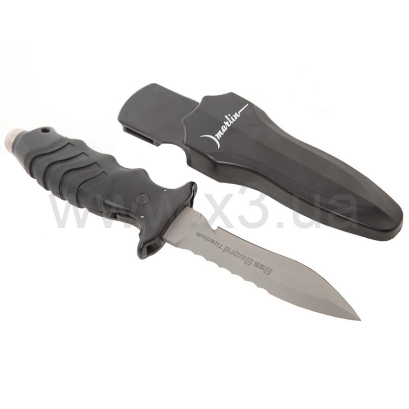 Универсальный нож с обоюдоострой заточкой. С одной стороны – острая режущая кромка, с другой – пилообразный стропорез. Выполнен из сверхпрочного и легкого титана. Благодаря эргономичной ручке нож удобно ложиться в ладонь. Благодаря уникальной системе фиксации, нож надежно закрепляется в ножнах.