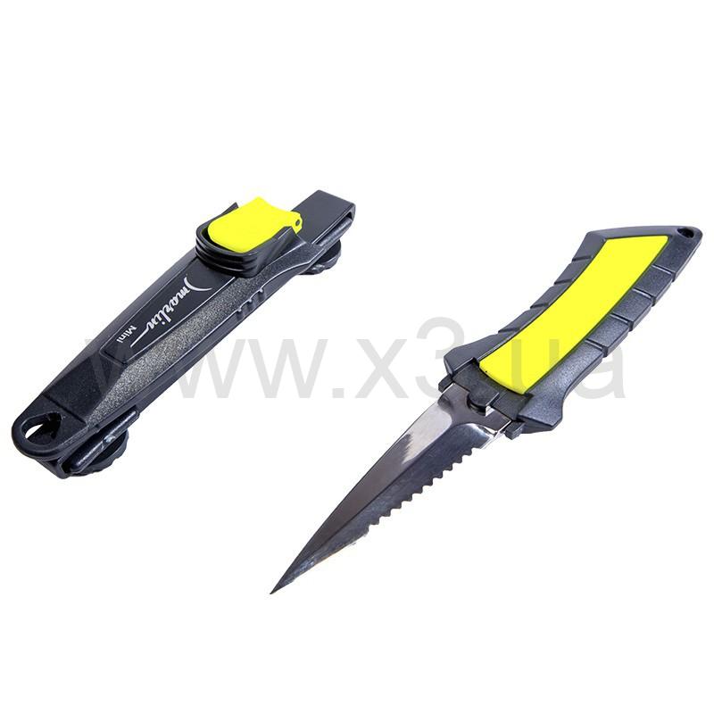 Нож для дайвинга Marlin Mini Steel (Марлин Мини стил) с возможностью крепления на жилет, на разгрузочный ремень или шланги инфлятора.