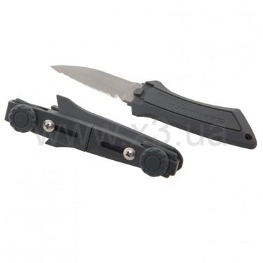 Компактный и легкий нож Mini titanium выполнен из титана. Снабжен режущей кромкой и стропорезом. Есть возможность закрепить ножны несколькими способами – к компенсатору, на грузовом поясе или на шланг компенсатора. Идеально подходит для любителей дайвинга.