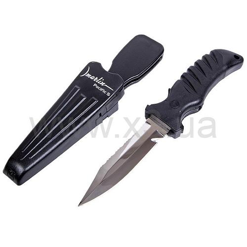 Нож Marlin Pacific S Stainless Steel - универсальный нож с обоюдоострой заточкой и классической формой клинка. С одной стороны – острая режущая кромка, с другой – пилообразный стропорез. Благодаря эргономичной ручке нож удобно ложиться в ладонь. Снабжен металлическим набалдашником на эфесе.