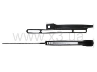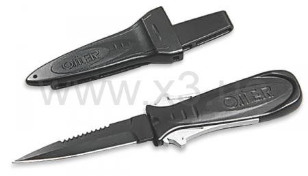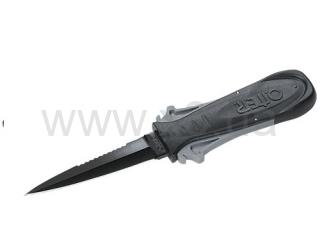 Новая модель ножа среднего размера обтекаемой формы с надежным фиксатором. Черное лезвие длиной 9 см из нержавеющей стали AISI420 с серейтором. Такой дизайн ножа, во-первых, снижает сопротивление воды, которое приходится преодолевать охотнику во время нырков, а во-вторых, компактность ножа значительно снижает вероятность зацепиться за фрагменты сетей или свой же линь и попасть в очень неприятную ситуацию.