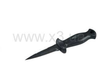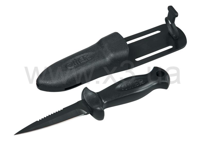 Черное лезвие длиной 8,5 см из первоклассной нержавеющей стали AISI420 с серейтором.