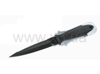 Нож серии LASER увеличенного размера. Лезвие длиной 13,5 см из нержавеющей стали AISI420 с серейтором. Рукоятка с "молотком" из нержавеющей стали. Длина клинка позволяет подводному охотнику высвободиться из запутавшихся сетей.