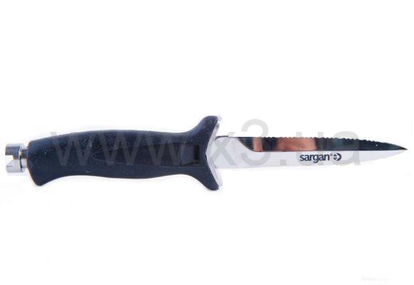 Нож охотничий Sargan БАЛТЫМ ЗЕРКАЛЬНЫЙ спроектирован специально для подводной охоты, отлично крепится к нагрудному креплению подводного костюма. Нож имеет прямое, узкое и в тоже время прочное и острое лезвие с острым концом. Очень удобная рукоятка анатомической формы, изготовленная из полипопилена, внешнее покрытие - терморезина.