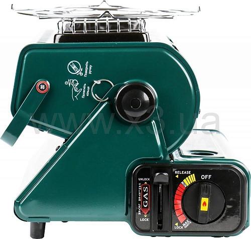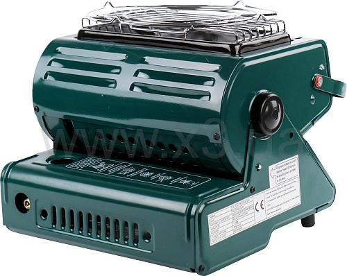 Газовый отопитель с пезоподжигом и переходником под газовый баллон. Газовый обогреватель работает путем нагрева керамической пластины, питания от гангового баллона объемом 220. Максимальное потребление составляет 90 г в час (1,3 кВт), поэтому тепловые обогреватели могут работать не менее 180 минут. В умеренных режимах длительность горения газа достигает 4 – 5 часов.