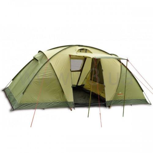 Семейная палатка с двумя спальнями, удобным входом и вместительным тамбуром обеспечит вам комфортный отдых всей семьей. Koнструкция палатки состоит из четырех дуг перекрещенных в 5 местах, что позволяет ей, несмотря на свои размеры, быть достаточно устойчивой.