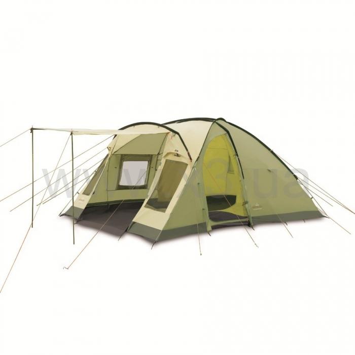 В тамбуре, на внешней стороне спальни предусмотрены кармашки для мелочей. Центральный вход можно использовать как небольшой навес. Кроме того данная модель отличается хорошей ветроустойчивостью за счет купольной конструкции дуг.