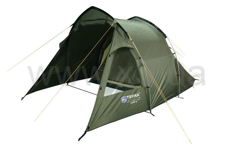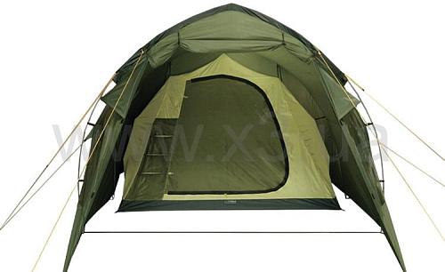 4-х местная кемпинговая палатка «туннельного» типа. Благодаря оптимальной конструкции каркаса формы «полубочка», палатка имеет приемлемую цену при достаточном комфорте в эксплуатации.