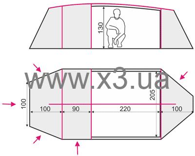 Устойчивая конструкция их четырех наружных дуг позволяет устанавливать тент без спального помещения, а также обеспечивает простую и быструю сборку и разборку всей палатки.