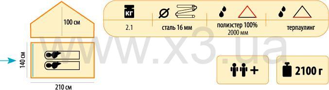 | Вес, кг (без колышков и упаковки) | 2.1 | |