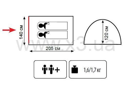 | Вес, кг (без колышков и упаковки) | 1.7 | |