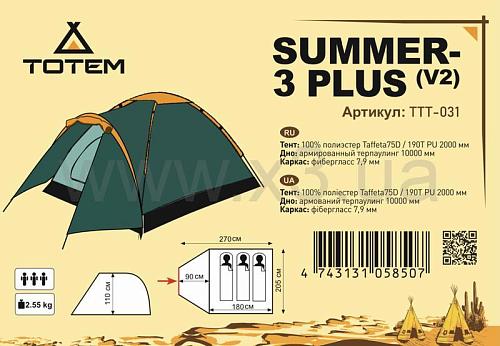 Легкая однослойная летняя трехместная палатка Totem Summer 3 (v2) для непродолжительных походов выходного дня и отдыха на природе.