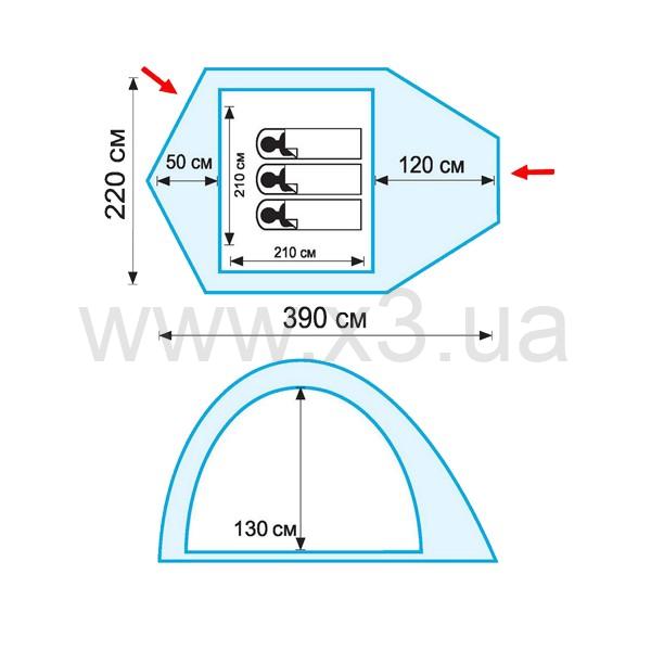 Все входы в спальное отделение продублированы москитными сетками. Палатка предназначена для туристических походов в весеннее, летнее и осеннее время.