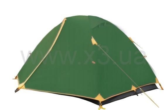 Двухслойная палатка с двумя входами. Верхняя консоль позволяет увеличить объем тамбура. Палатка имеет 2 вентиляционных клапана с регулируемой по высоте стойкой. Все швы палатки проклеены.