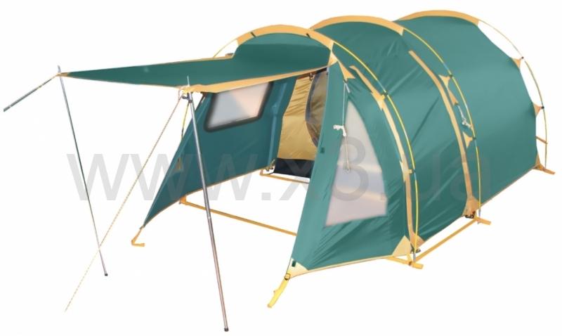 Двухслойная палатка с тремя входами. Палатка тоннельного типа с большим тамбуром. В жилом помещении оба входа снабжены москитными сетками. Все швы палатки проклеены. Палатка предназначена для туристических походов в весеннее, летнее и осеннее время.