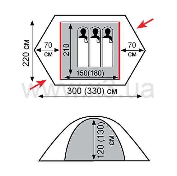 Размеры: 330х220x130 см