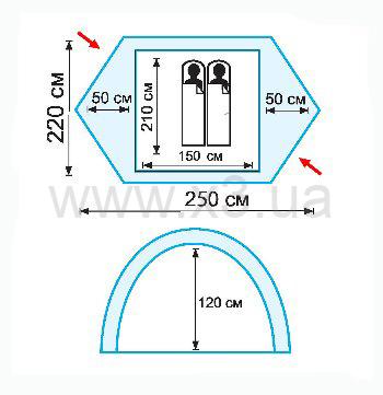 Двухслойная палатка с двумя входами. Палатка имеет 2 вентиляционных клапана с регулируемой по высоте стойкой. Все швы палатки проклеены. Все входы в спальное отделение продублированы москитными сетками. Палатка предназначена для туристических походов в весеннее, летнее и осеннее время.